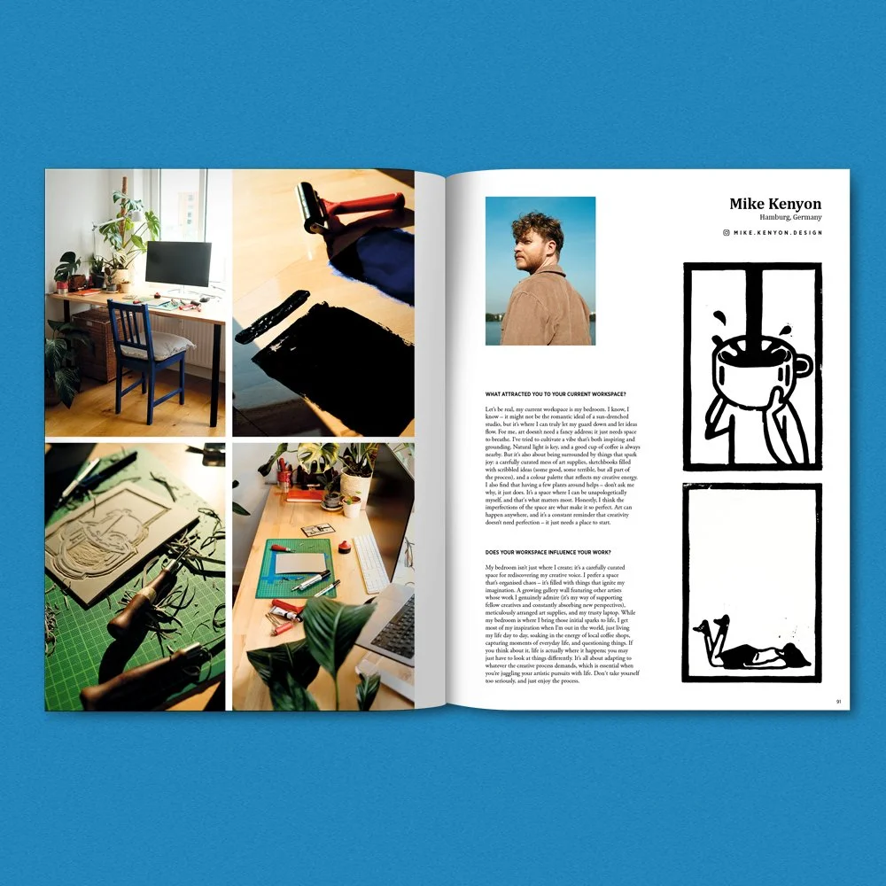With everything that’s going on in the world today, it’s easy to feel like you want to bury your head in the sand or hibernate – I know I often do. Getting lost in my work and new ideas – be it for the magazine or in my printmaking experiments – is what truly keeps me going. This issue sees our makers sharing a real breadth of perspectives – whether it’s looking after the world by implementing safer, non-toxic printing practices or depicting nature’s forces and cycles with ink and paper, our artists have a real talent for capturing the complexity of life.